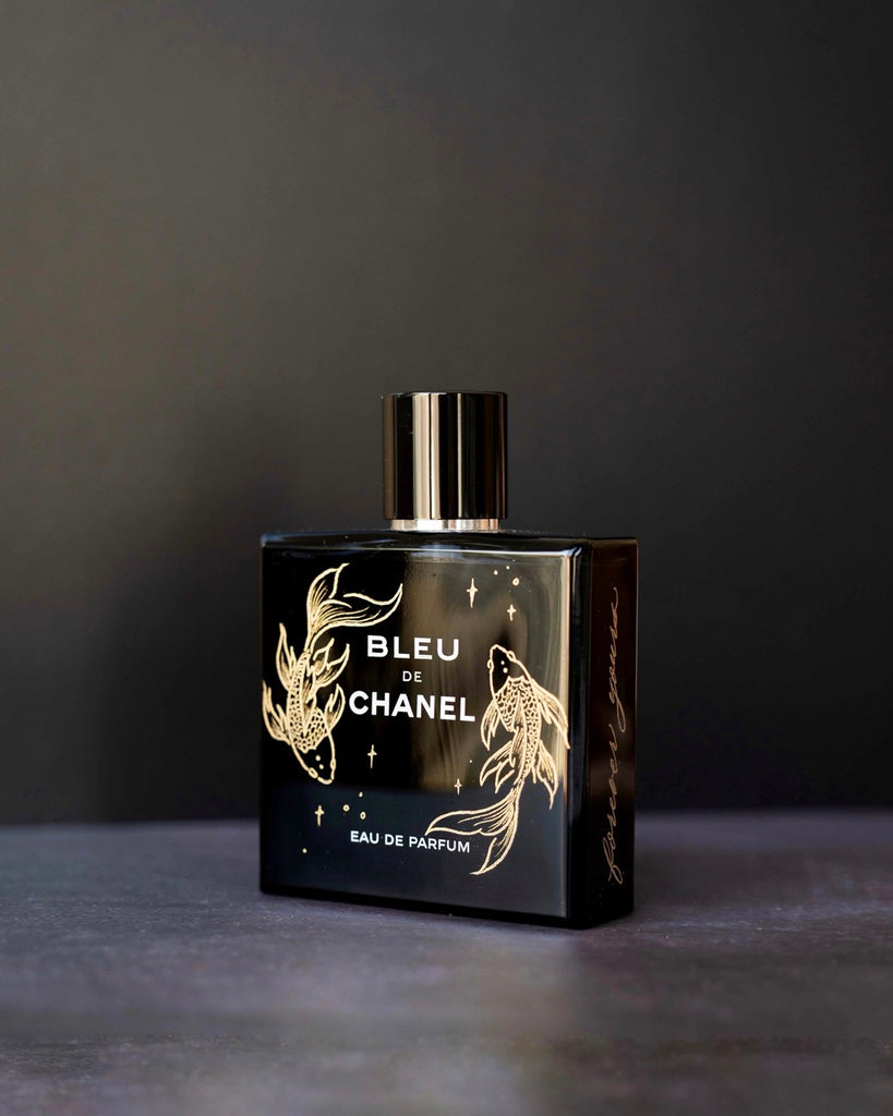 glass, metal, acrylic, stone or leather -perfect for perfume bottles, candles, champagne bottles or luxury accessories. Each engraving is permanent, scratch-resistant and designed to complement the piece’s form and texture.